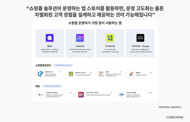 특히 최근에는 고객 경험이 더욱 중요해지고 있습니다. 결국 방문부터 탐색, 구매에 이르기까지 고객이 끊기지 않는 매끄러운 과정을 거치도록, 그리고 기존 서비스가 가진 매력이 여기에 자연스레 묻어날 수 있도록 하는 것에 대해 계속 고민해야만 합니다. 다행인 점은 최근에는 쇼핑몰 솔루션들이 고도화된 것은 물론이고, 자체 앱 스토어를 통해 쇼핑몰의 운영을 돕는 다양한 기능을 제공하고 있다는 건데요. 이를 잘 활용한다면, 비즈니스의 규모와 상관없이 누구나 차별화된 고객 경험을 만들 수 있을 겁니다. 개인적으로 쿠팡, 네이버 같은 너무 거대 플랫폼이 시장을 온전히 장악하는 건 재미없어 보인다고 생각합니다. 각각의 특색을 살린 커뮤니티 기반 커머스 플랫폼들이 앞으로도 많이 등장해서 이커머스 시장을 보다 다채롭게 만들어 주기를 바랍니다.