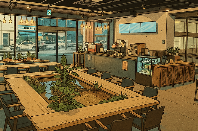 2. 카페는 현대인에게 특별한 장소다. 사회학자 레이 올든버그가 말한 ‘제3의 공간’. 집도, 직장도 아닌 그 중간쯤에 위치한 중립지대다. 여기서는 일상에서 억눌린 감정들이 스르르 흘러나온다. 가족의 눈치를 봐야 하는 집도 아니고, 업무에 갇힌 직장도 아니기에 말이다. 특히 같은 처지의 사람들이 모이면, 말문은 더 쉽게 열린다. 서로의 고단함에 금세 공감이 생기고, 숨겨둔 이야기들이 봇물 터지듯 쏟아진다.