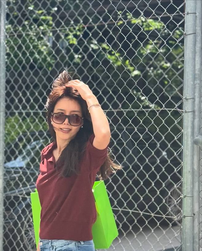 채정안의 이번 룩은 과하지 않은 꾸안꾸 스타일의 좋은 예시였어요.