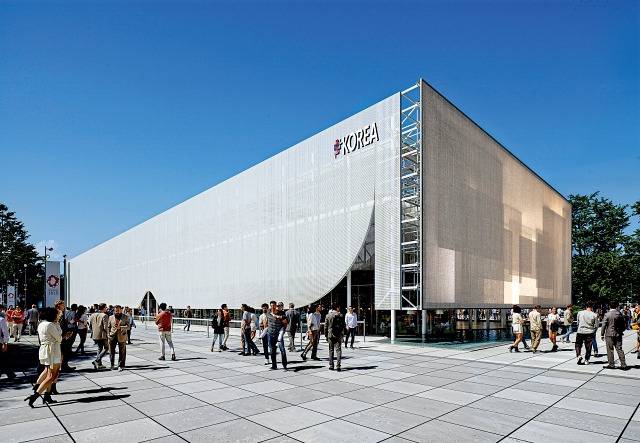 한국관의 대형 미디어파사드에서는 한국의 발전상, 유산, 관광문화 관련 영상이 상영돼 관람객의 이목을 집중시켰습니다.