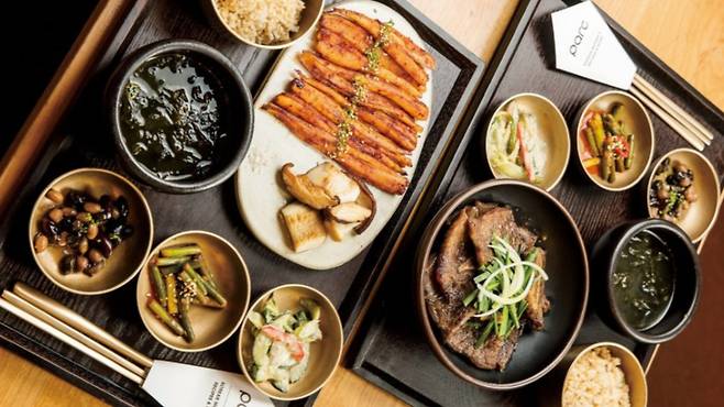 런치 타임엔 솥밥을 중심으로 한 깔끔한 한식, 디너 타임에는 드라이에이징 스테이크와 한식 기반의 코스요리를 맛볼 수 있어요.