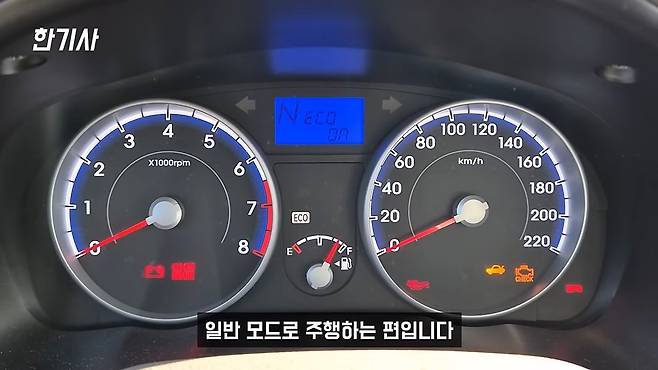 이 차에는 일반 모드랑 에코 모드가 있는데 일반 모드로 주행하는 편입니다. 도로 주행 비율은 일반 공도 6, 고속도로 4 비율 정도 되고, 그렇게 주행했을 때 복합 평균 연비는 제가 차계부를 작성하거든요. 2년 동안 차계부를 작성했을 때 12.4km/L 정도 나옵니다.