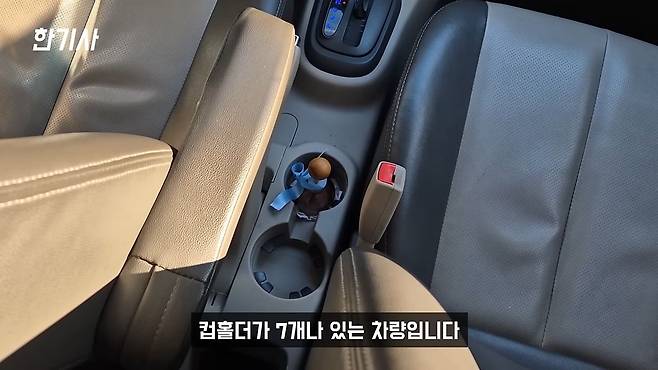 이 차는 콘솔박스가 없는 대신에 컵홀더나 7개나 있는 차량입니다. 여자친구랑 커피나 음료수를 많이 마시는데 운전석 하나, 조수석 하나 그리고 센터에 컵홀더가 3개나 있거든요. 앞 좌석만 해도 총 5개나 있어서 커피나 음료수 보관할 때 매우 용이한 차량이기도 합니다.