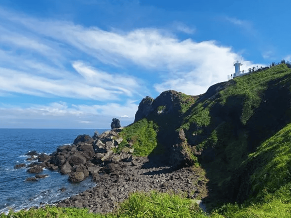 섭지코지는 완만한 해안 산책로와 푸른 초원이 어우러진 절경 명소인데요. 여름철에는 해변을 따라 불어오는 시원한 바람과 파도 소리가 어울려, 걷기만 해도 힐링이 됩니다. 등대와 붉은 오름이 어우러진 풍경은 영화 속 한 장면처럼 아름답습니다.
