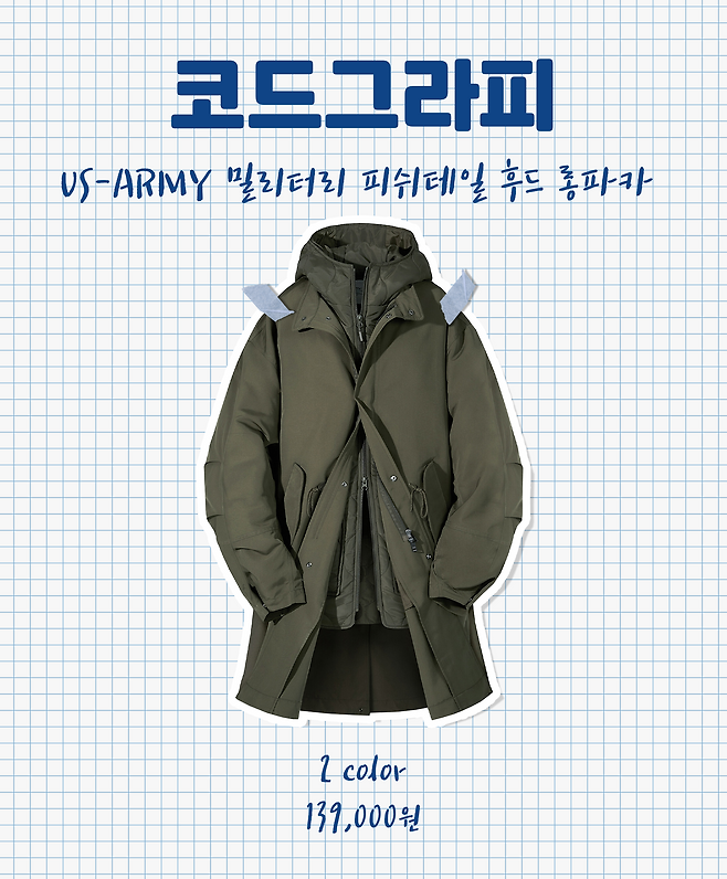 코드그라피 US-ARMY 밀리터리 피쉬테일 후드 롱파카