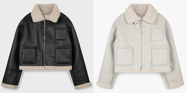 플레이스 스튜디오 솔리드 무톤 플리스 양털 레더 무스탕 자켓