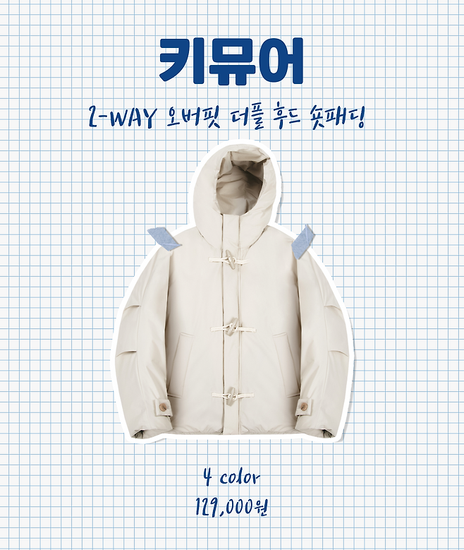 #키뮤어 2-WAY 오버핏 더플 후드 숏패딩