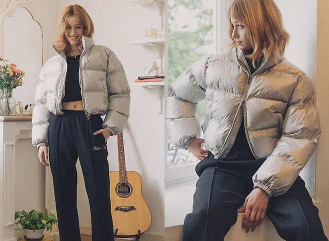 #비터셀즈 글로시 크롭 푸퍼 자켓