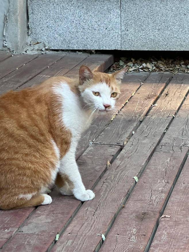 멀리서 보면 오렌지색과 흰색이 섞인 털뭉치가 마치 잔디밭에서 구르는 것 같았습니다.
