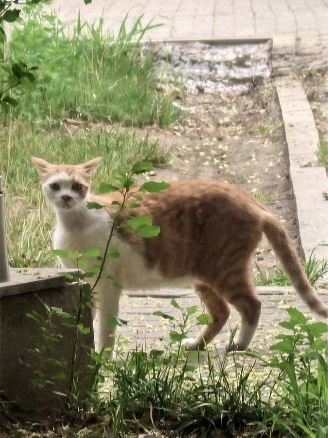 멀리서 보면 오렌지색과 흰색이 섞인 털뭉치가 마치 잔디밭에서 구르는 것 같았습니다.