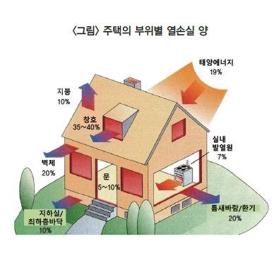주택의 주요 부위별 열손실 양은 다음과 같다.