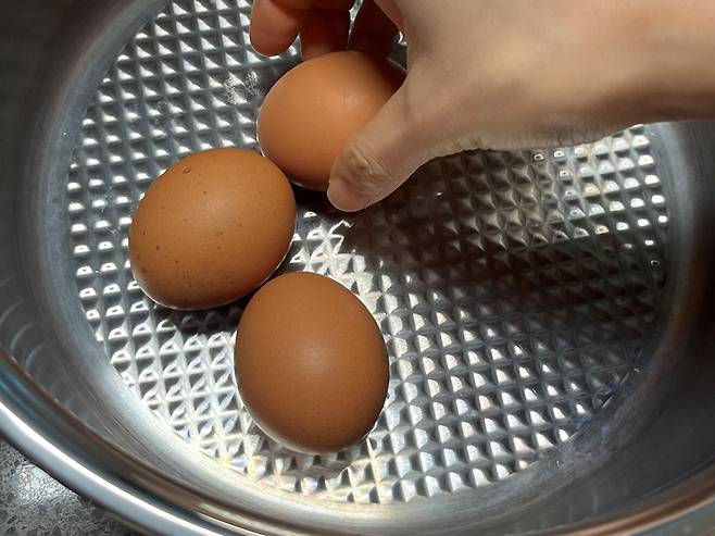 냄비에 찜기를 깔고 그 위에 계란을 올려서 찌는 것도 방법입니다. 완숙 기준 12~15분 정도 쪄줍니다. 찬물이나 얼음물에 담가 억지로 온도를 낮추지 않아도 껍질과 알맹이 사이에 충분한 공간이 생기기 때문에, 요리 초보자도 실패 없이 매끈하고 깔끔한 삶은 계란을 만들 수 있습니다.