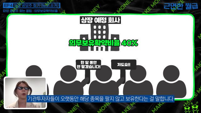 두 번째는 의무보유확약 비율입니다. 이건 기관투자가가 일정 기간 공모주를 팔지 않기로 약속하는 비율을 말하는데요.