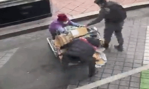 군인은 할머니한테 잠시 말을 거는 듯하더니, 폐지의 균형이 무너지지 않게끔 중심을 맞추는 등 최선을 다해 할머니를 도왔다.