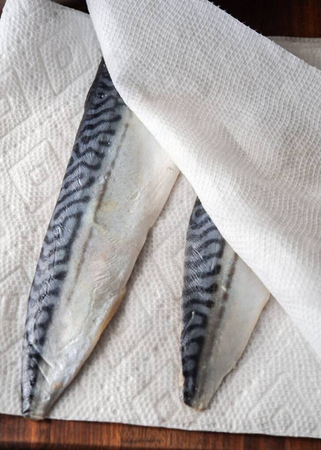 1. 냉동 고등어는 쌀뜨물에 10분 정도 담가 해동하고 비린내를 제거한 뒤 물기를 닦는다.