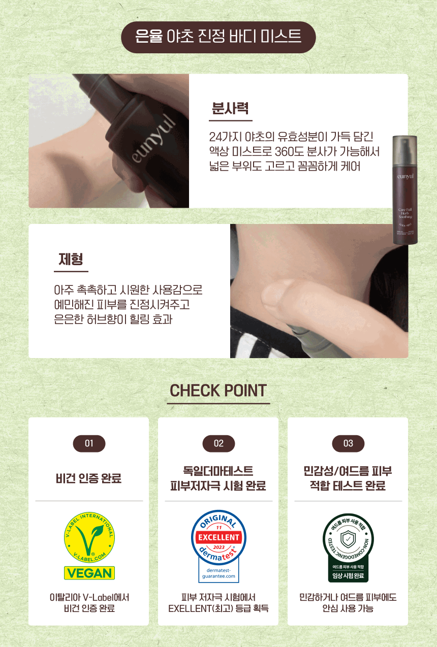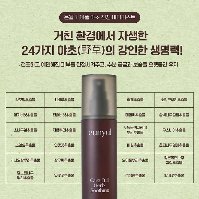 은율 케어 풀 야초 진정 바디 미스트야.