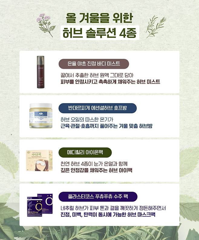 여기에 겨울철 찬바람과 히터바람에 자극받아 급격하게 진행된 노화를 늦추는 데에도 '허브 솔루션'이