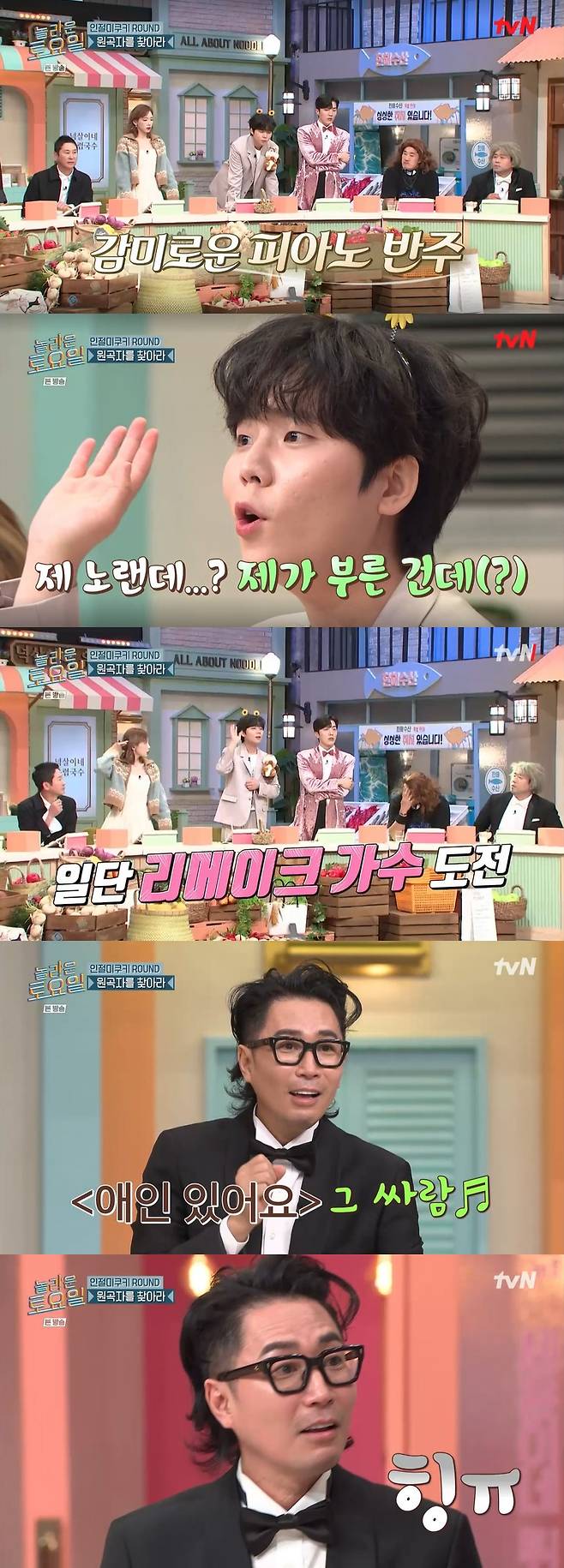 리메이크 곡을 듣고 원곡자를 맞히는 게임으로 지난 2021년 발매한 정승환의 '애인 있어요'가 문제로 흘러나왔다.