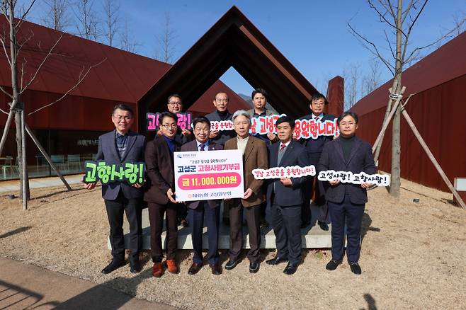 김무성 농협중앙회 고성군지부장을 비롯 허식 前 농협중앙회 부회장, NH농협 재경향우회 회장인 류정훈 농협중앙회 상호금융기획부장 등 서울과 창원의 농협중앙회와 농협은행 등에 재직하는 NH농협 고성향우회 향우들이 고향을 향한 특별한 애정을 담아 고향사랑기부금 1100만원을 기탁했다.