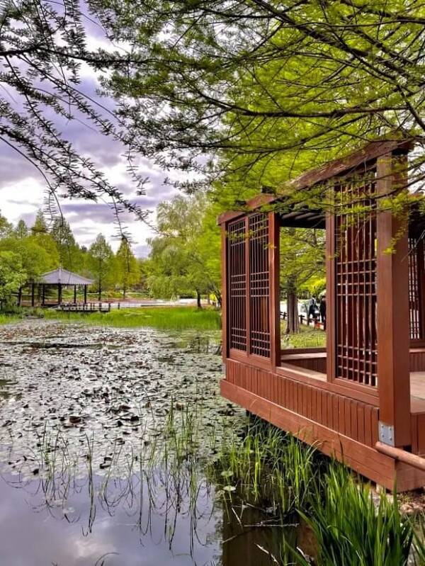 전주 덕진공원은 한옥마을에서 차량으로 10분 거리로, 연못을 중심으로 산책로와 넓은 잔디밭, 연꽃정원, 생태쉼터, 어린이 놀이터 등이 조성되어 있습니다. 5월부터는 연꽃이 피기 시작해 7월까지 이어지며, 연못과 나무데크길, 돌다리 구간이 특히 인기가 많아요.