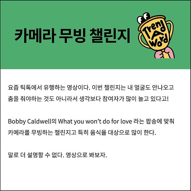 우리나라 사람들이 '카메라 무빙 챌린지'라거나 '음식 무빙 챌린지'라고 명명해 주었을 뿐!