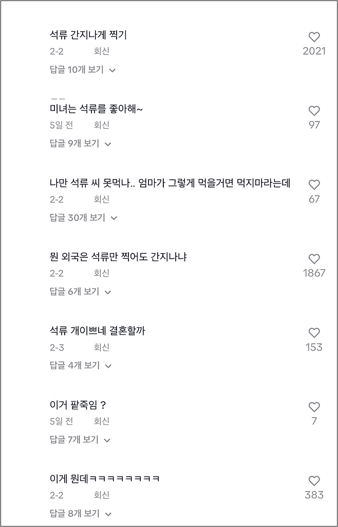나름 가장 유명한석류 영상의 댓글들이다.