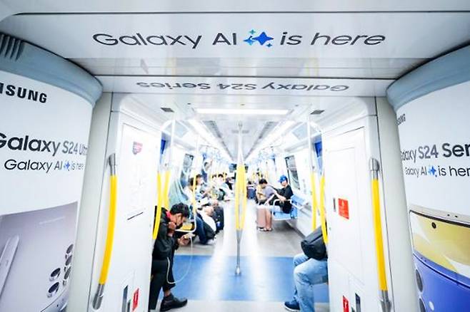 삼성전자는 TRX 삼성 갤럭시역과 역을 통과하는 지하철의 내·외부를 '갤럭시 S24 시리즈'와 '갤럭시 AI' 이미지로 꾸며 본격적인 제품 홍보에 나섰습니다.