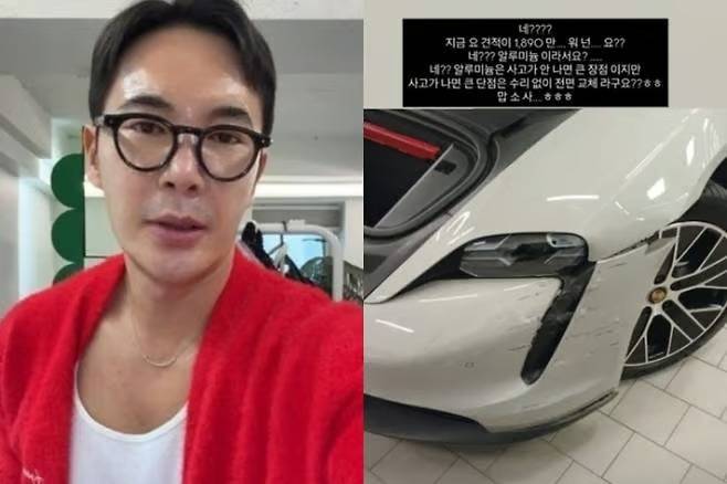 지난 9월 27일, 유명 스타일리스트 김우리가 자신의 SNS에 올린 게시물 한 장이 자동차 커뮤니티를 뒤흔들었다. “네? 지금 이 견적이 1890만원요? 네? 알루미늄이라서요?” 그가 공개한 포르쉐 타이칸의 수리 견적서, 그 금액은 믿을 수 없는 1890만원. 단순히 범퍼 하나 교체하는 비용이었다.