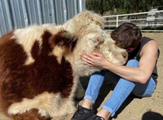 도살장에서 구조된 소 ‘아레사’는 구조자의 무릎에 고개를 기대고 잠이 들었습니다.