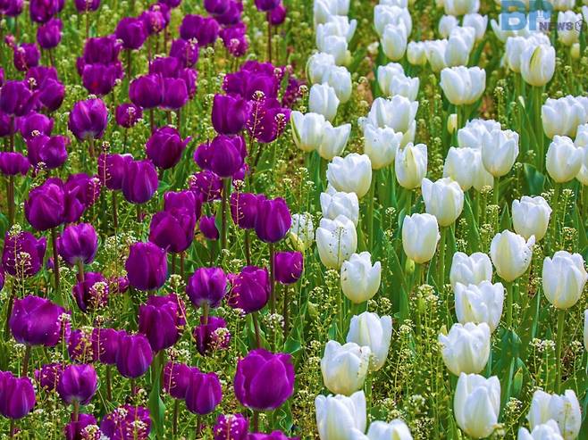 튤립을 좋아한다면 지금이 딱이다. 청주 도심 한가운데에서 생각지도 못한 꽃 풍경이 펼쳐지고 있다.