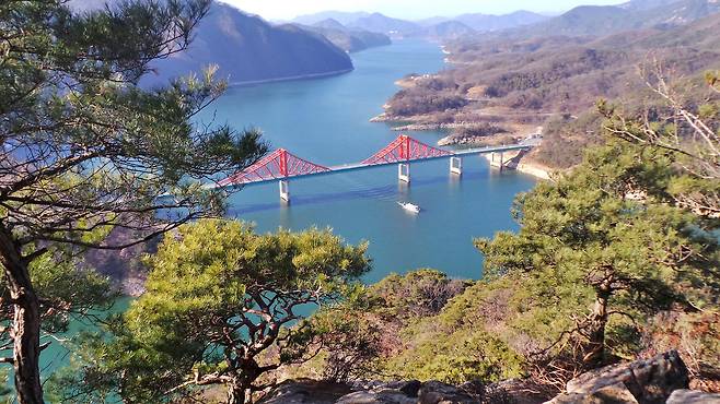 트레킹 내내 양옆으로 펼쳐지는 기암절벽 사이로 청풍호가 드러나는데, 날씨가 맑은 날엔 호수 색감이 더 짙어져 사진보다 훨씬 웅장한 풍경을 느낄 수 있다.