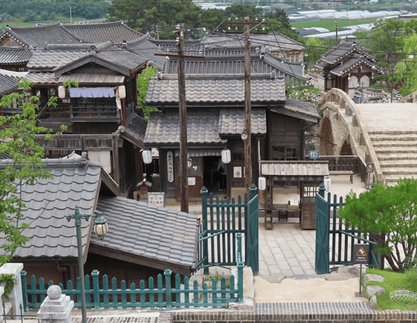 논산의 선샤인랜드는 드라마 미스터 션샤인의 주요 배경지로 사용되며 단숨에 주목받기 시작했는데요. 일제강점기와 근대 개화기 분위기를 재현한 오픈세트장은 마치 시간 여행을 떠난 듯한 착각을 불러일으킵니다. 한옥과 벽돌 건물이 조화를 이루는 거리, 철길과 담벼락까지 모두 섬세하게 꾸며져 있어 드라마 속 분위기를 그대로 느낄 수 있는데요.