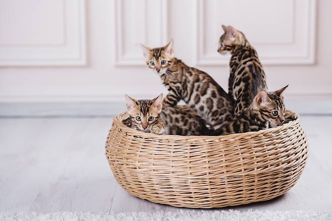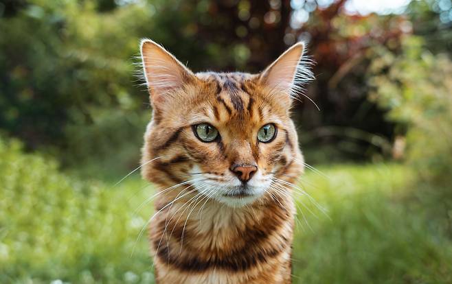 그리고 뱅갈 고양이는 살쾡이의 영향을 받아 야생성이 강하고, 표범이나 호랑이를 연상케 하는 독특한 무늬가 특징이랍니다.