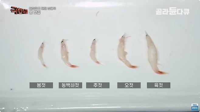 지난 4월 방송된 EBS 다큐 <극한직업 - 봄을 맞이하는 사람들>은 충남 강경의 한 젓갈 공장을 소개했다. 이곳은 4대째 같은 방식으로 새우젓을 담그고 있으며, 매일 수천 개 병에 육젓을 포장한다. 하루 작업량은 약 4.5톤에 달한다.