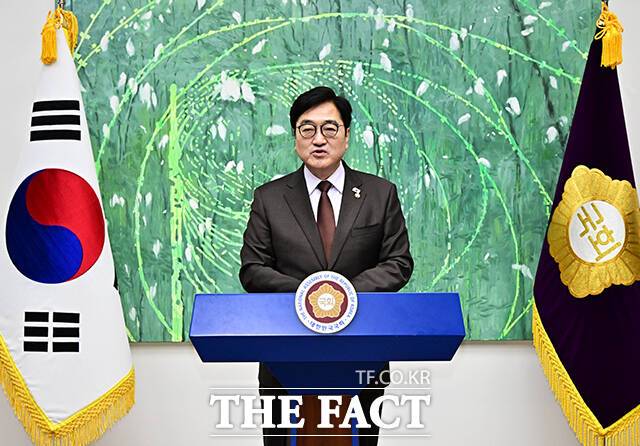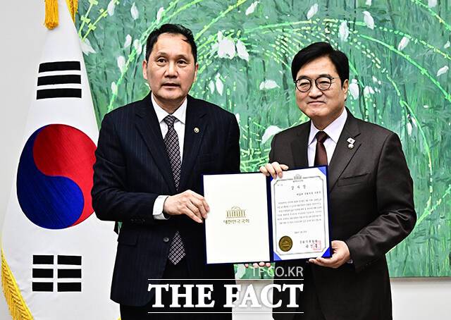 우 의장이 이날 기증한 물품은 12·3 비상계엄 해제와 윤석열 전 대통령 탄핵소추안을 의결할 당시 파손됐던 본회의장 의사봉과 의사봉판이다.