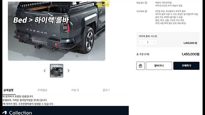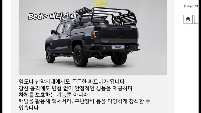 타스만의 다양한 오프로드 액세서리는 온라인과 오프라인에서 확인 가능하며, 전체 옵션을 모두 선택할 경우 예상보다 비용이 크게 증가할 수 있어 구매 전 신중한 선택이 필요하다.