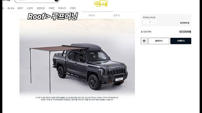 타스만의 어닝 시스템은 햇빛과 비를 막아주는 필수 액세서리다. 기본 어닝은 62만 7,000원으로, 알루미늄 소재로 제작되어 가볍고 내구성이 뛰어나다.
