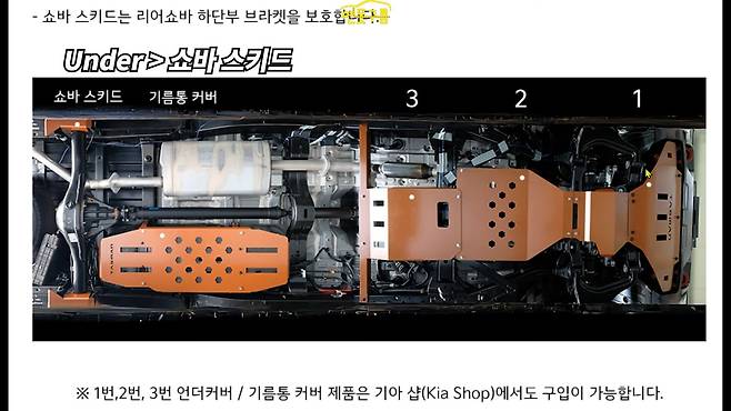 타스만의 주요 액세서리 중 차량 하체 보호를 위한 언더커버 및 스키드 플레이트류만 모두 선택해도 66만 원이 소요된다. 구체적으로는 쇼바 스키드가 12만 원, 기름통 커버가 15만 원, 엔진 하부 언더커버가 16만 5천 원, 중간 부분 언더커버가 13만 원과 9만 5천 원으로 책정됐다.