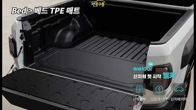베드 바닥을 보호하고 미끄럼을 방지하는 TP 매트도 준비됐다. 이 매트는 픽업트럭을 실용적으로 사용하는 데 필수적인 액세서리로 자리매김할 전망이다.