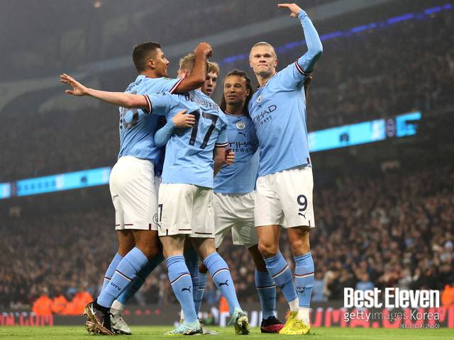 맨시티가 전반 10분 만에 앞서나갔다. 홀란이 더 브라위너가 왼 측면에서 올린 크로스를 선제골로 연결했다.