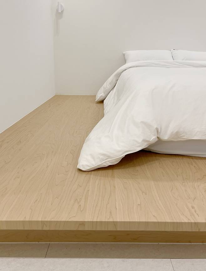 현재는 매트리스를 놓고 사용하고 있지만 나중에 아이가 생기면 토퍼나 요를 깔고 셋이 평상 위를 굴러다닐 상상을 하며 제작했습니다.