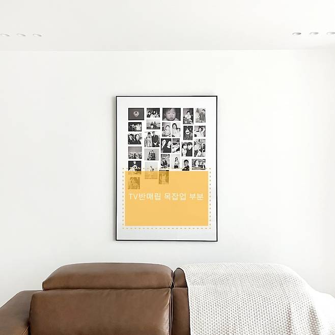 스마트폰으로 원하는 채널을 보다보니 TV를 켜는 일이 드물어서 벽걸이형TV는 설치하지 않았지만 나중에 아이가 생기면 아이를 위해 TV를 설치해야 할지도 모른다는 생각에 TV는 반매립이 가능하도록 목작업을 해놓았어요. 현재는 무드있는 DIY 액자로 TV설치 자리를 감춰 놓았습니다. 감쪽같죠?