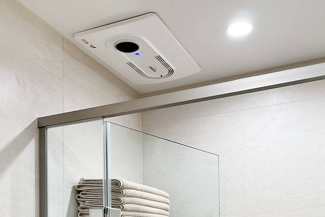 그래서 바스 타올과 휴젠트를 샤워 부스 안에 설치하여 샤워 후 샤워 부스 안에서 모든 마무리를 할 수 있도록 했습니다.