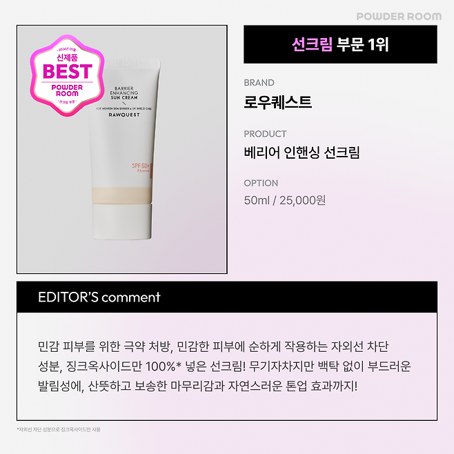 *자외선 차단 성분으로 징크옥사이드만 사용