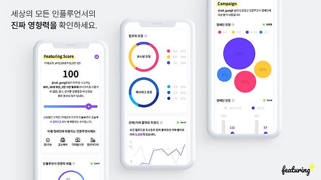 많은 인플루언서 마케팅 기업이 생겨나는 가운데 피처링의 가장 큰 강점은 자체 구축한 AI 데이터엔진이다. 이 엔진은 SNS 데이터를 수집·분석해 인플루언서의 실제 영향력을 댓글 반응, 소통력, 기획력 등 다양한 지표로 수치화한다. 단순한 팔로워 수가 아닌 '실질적 영향력'을 중심으로 평가하는 것이 특징이다.