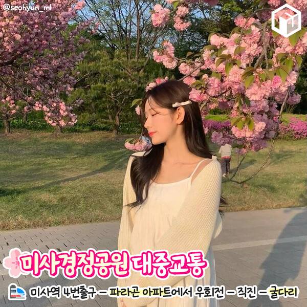 벚꽃과 겹벚꽃 시기에는 차량이 많아 대중교통 이용을 권장합니다. 미사역 4번 출구를 이용하면 도보 약 10분 이내로 공원 진입이 가능한데요. 미사역 4번출구에서 미사역 파라곤 아파트에서 우회전 한 뒤 직진하면 나오는 굴다리를 통해서 겹벚꽃 스팟까지 갈 수 있습니다.
