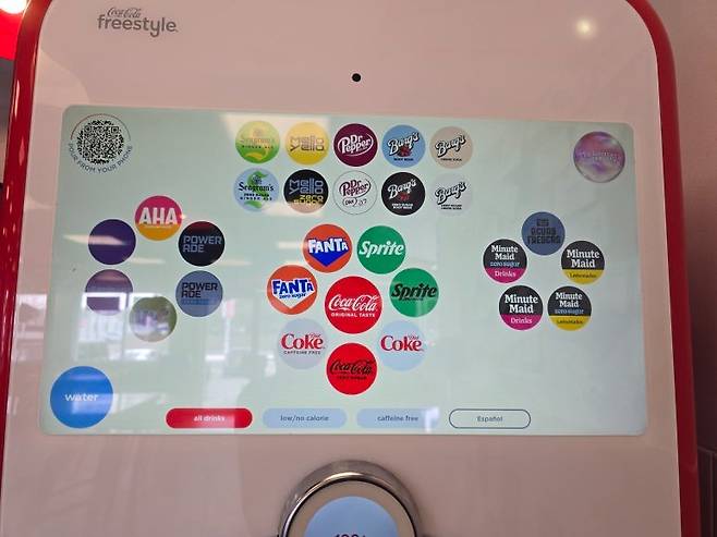 맛있고 재미난 경험이긴 하지만 뱃골 작은 한국인은 프리스타일이라 한들 다양하게 맛보기는 힘들다. 기억을 더듬어보니 다이어트 코크 메뉴로 들어가서 체리맛으로 선택했던듯.
