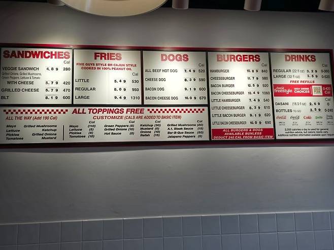 파이브 가이즈에는 세트 메뉴가 없어서 주문하는 방법이 좀 까다롭다고 알려져 있는데, 따지고 보면 아주 간단함.