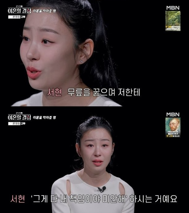 결국 명서현은 남편인 정대세에게 "엄마의 아들로 살 거면 여기 남고, 남편으로 살 거면 지금 집으로 가자"라며 극단적인 선택을 제안하기까지 이르는데요. 이때 두 사람이 다투는 소리를 들은 시아주버니가 방으로 찾아와 무릎을 꿇고 사과했다고 합니다.