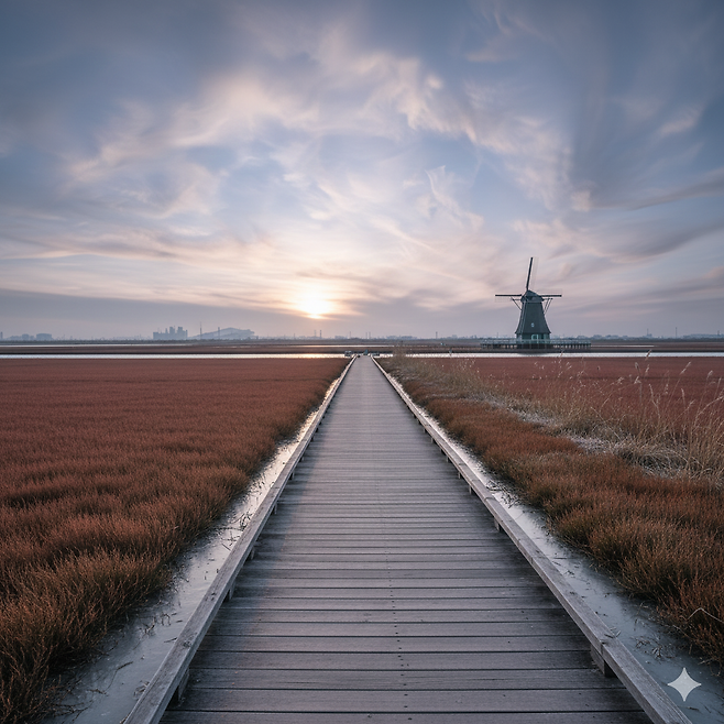붉은 염생식물이 갯벌을 수놓고 고즈넉한 풍차가 낭만적인 분위기를 더하는 이곳은, 마치 한 폭의 그림 같은 풍경으로 사랑하는 이의 마음까지 사로잡을 특별한 추억을 선사할 것입니다.